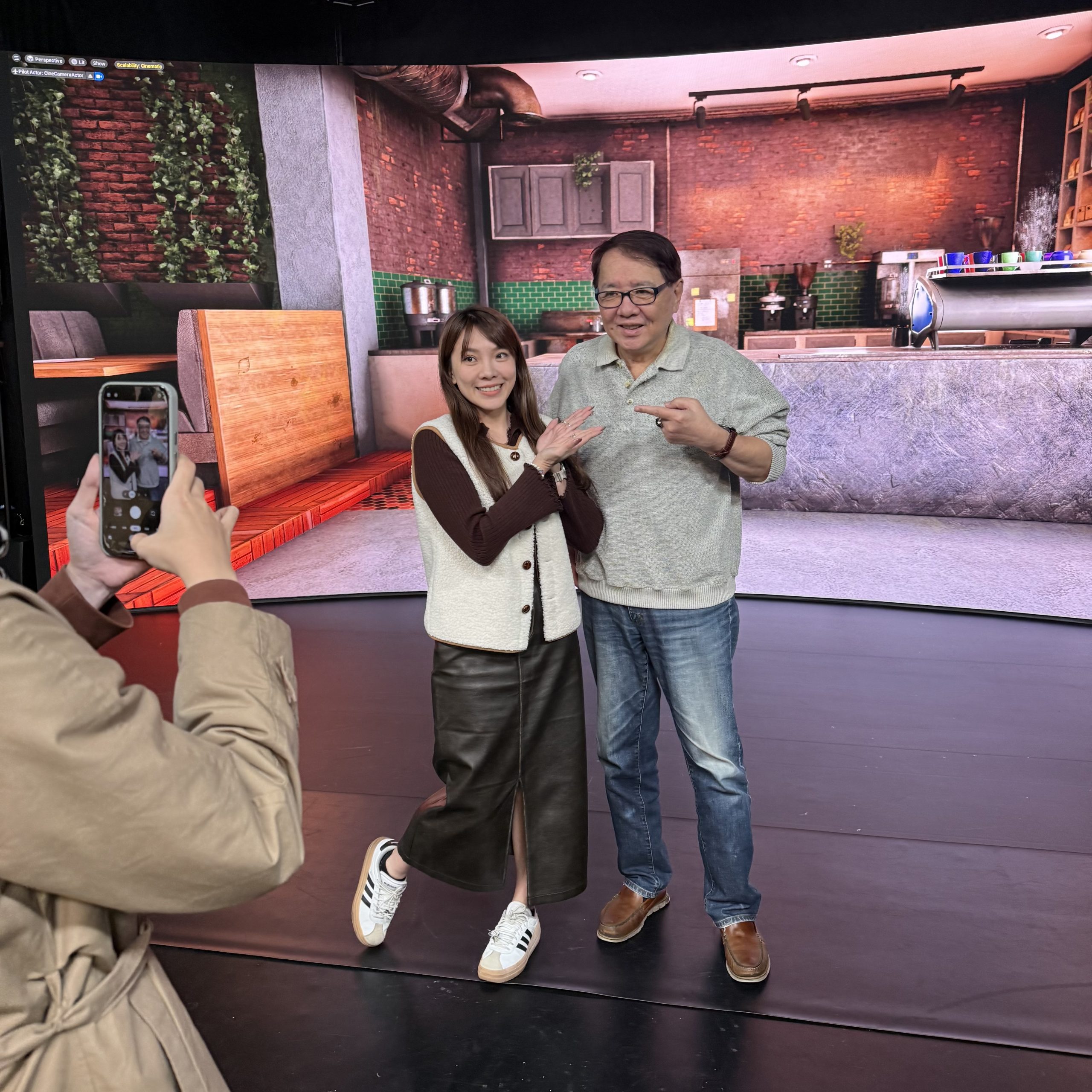 此次拍攝運用大型 LED 背景屏並搭配即時運算效果,使虛擬場景能與實體拍攝同步運作。相較於傳統搭景與後期製作流程,XR 製作模式可在拍攝當下即完成場景呈現,有效減少後期製作成本,並提高導演、攝影與演出團隊的現場工作效率。 在實務操作上,相關系統可依節目內容需求即時切換不同場景與氛圍,不僅降低實體場景建置所需的運輸、人力與時間,亦有效降低碳足跡,也讓拍攝流程更具彈性,特別適合內容形式多元、節奏快速的網路節目與數位內容製作。